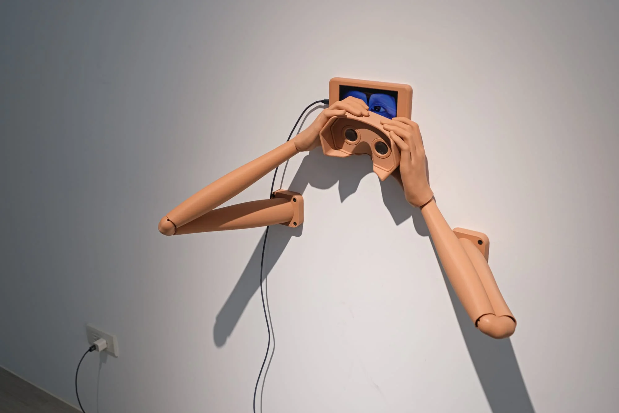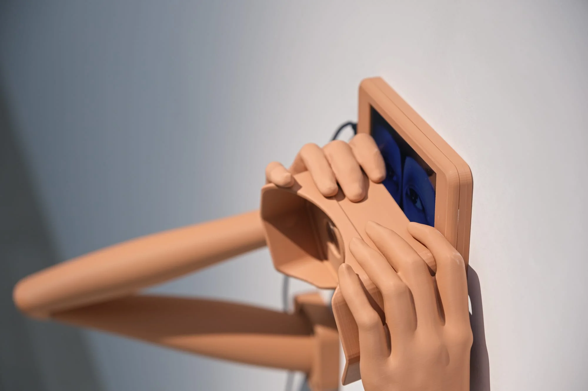 雙頻道 I:眼睛/單頻道錄像、手機、3D列印互動裝置/35(H)x70x25cm/2023