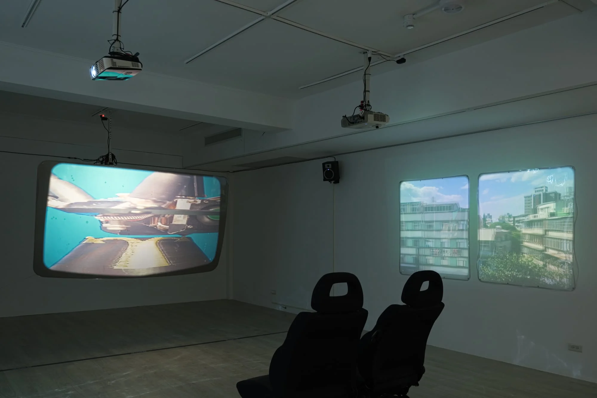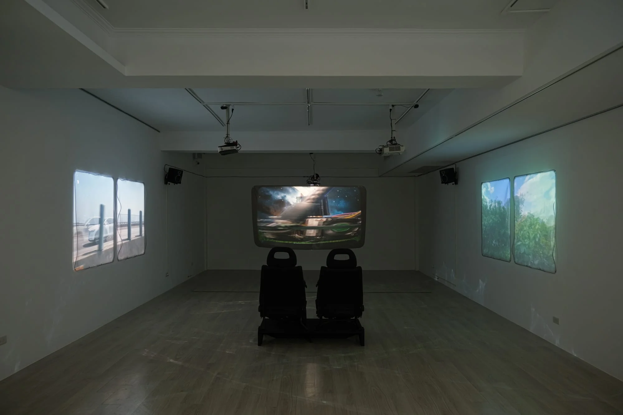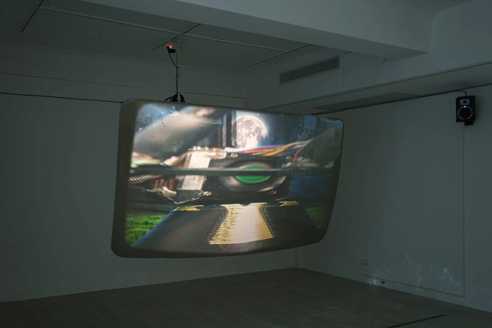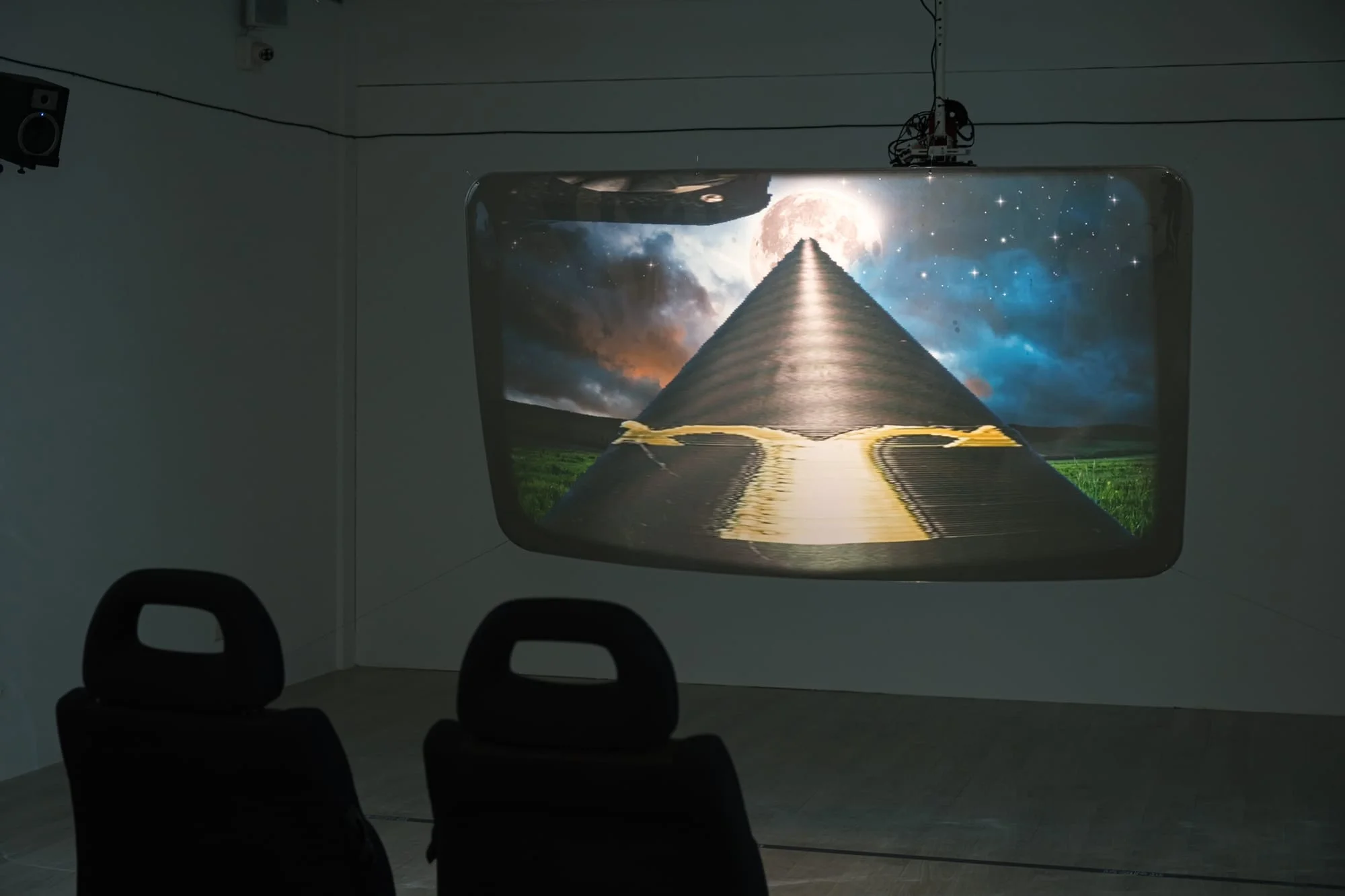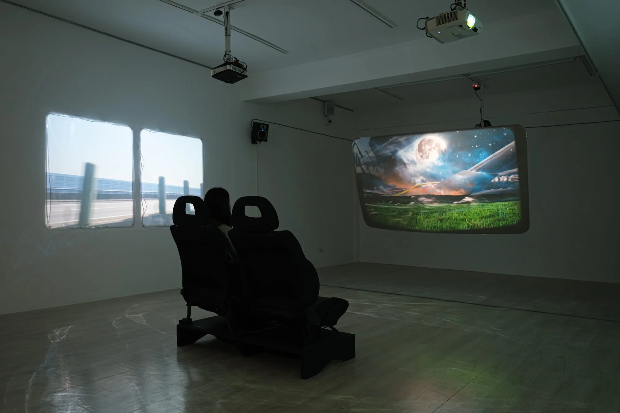 公路電影:月球之旅/單頻道錄像、汽車座椅、PVC投影幕/14'56"/2021