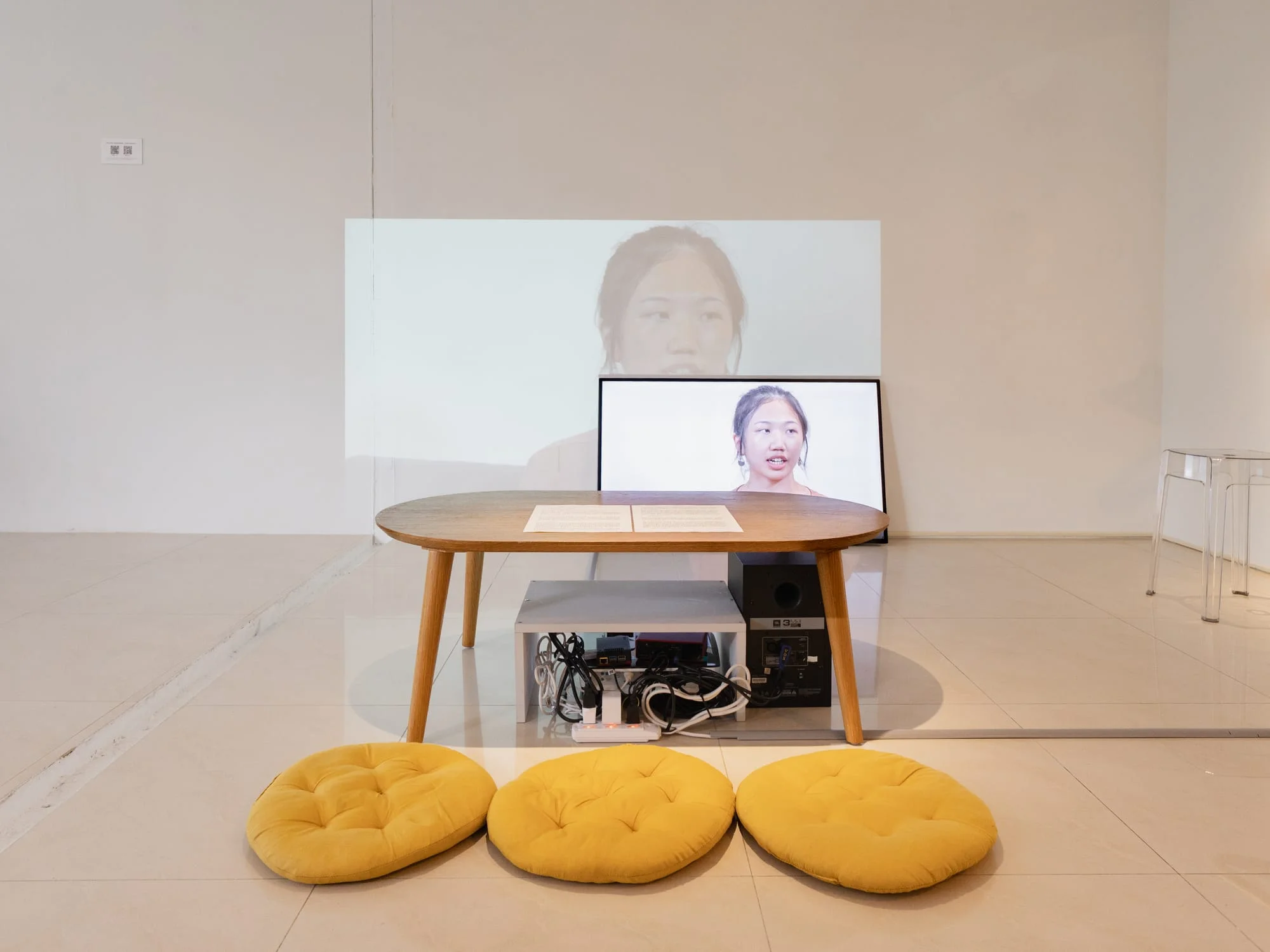 This is an experiment using an interview video from a previous exhibition. The next interviewee will be a philosopher.
