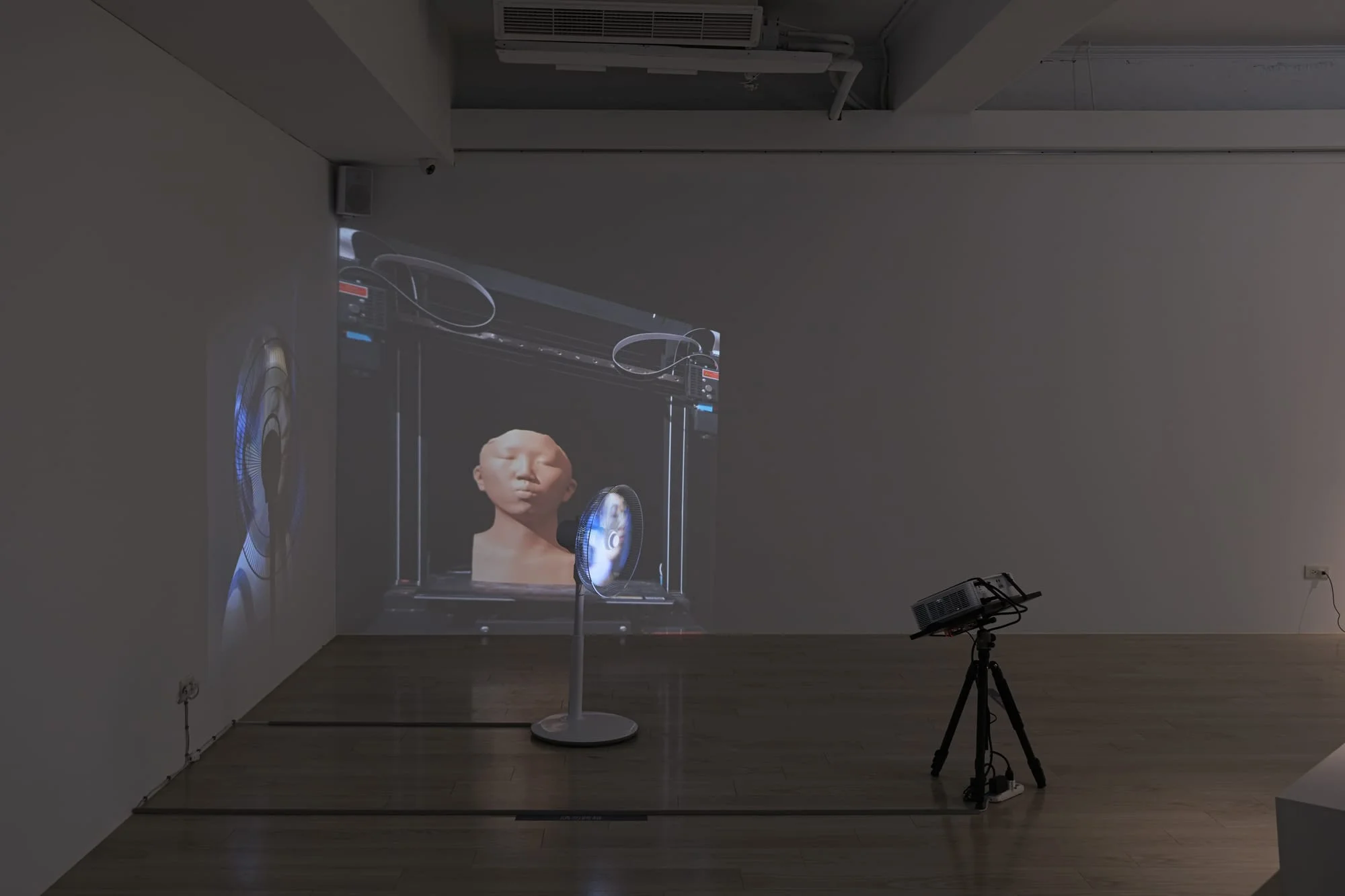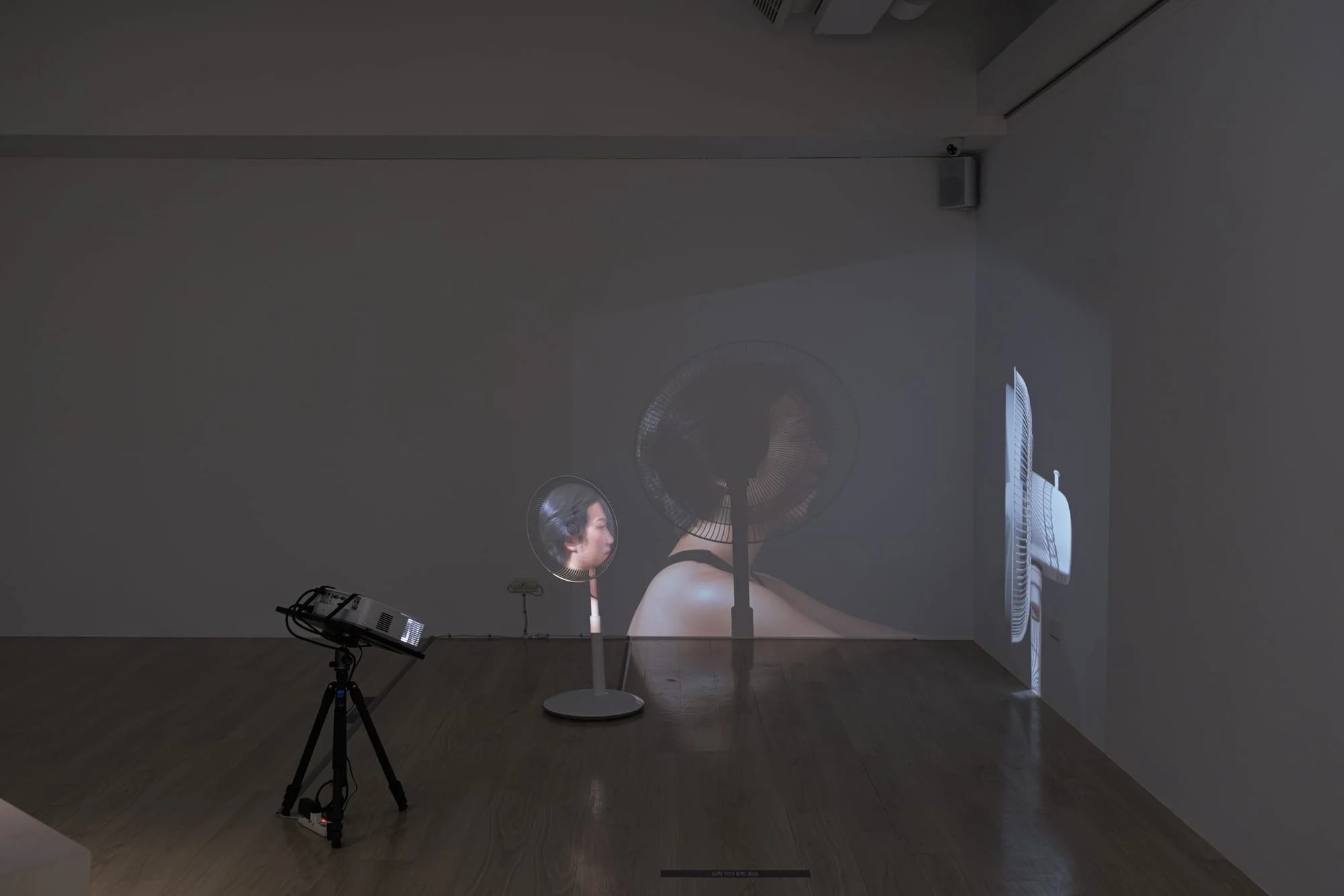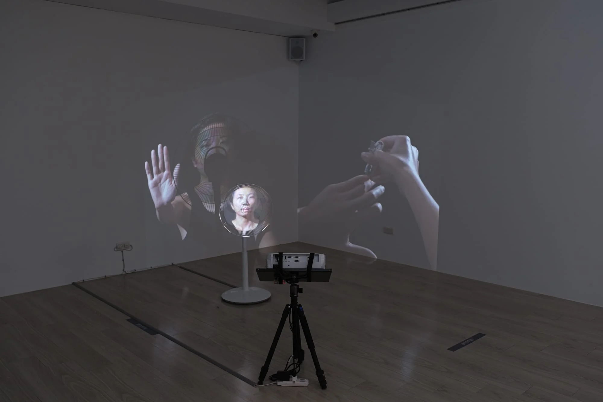 在一片風聲的靜默中,思緒同時是說話也是聆聽。我採集了一些意識狀態下的時間感知剖面,試著讓它在循環的扇葉、不同狀態下視野的穿透性及流動的空氣中顯現。