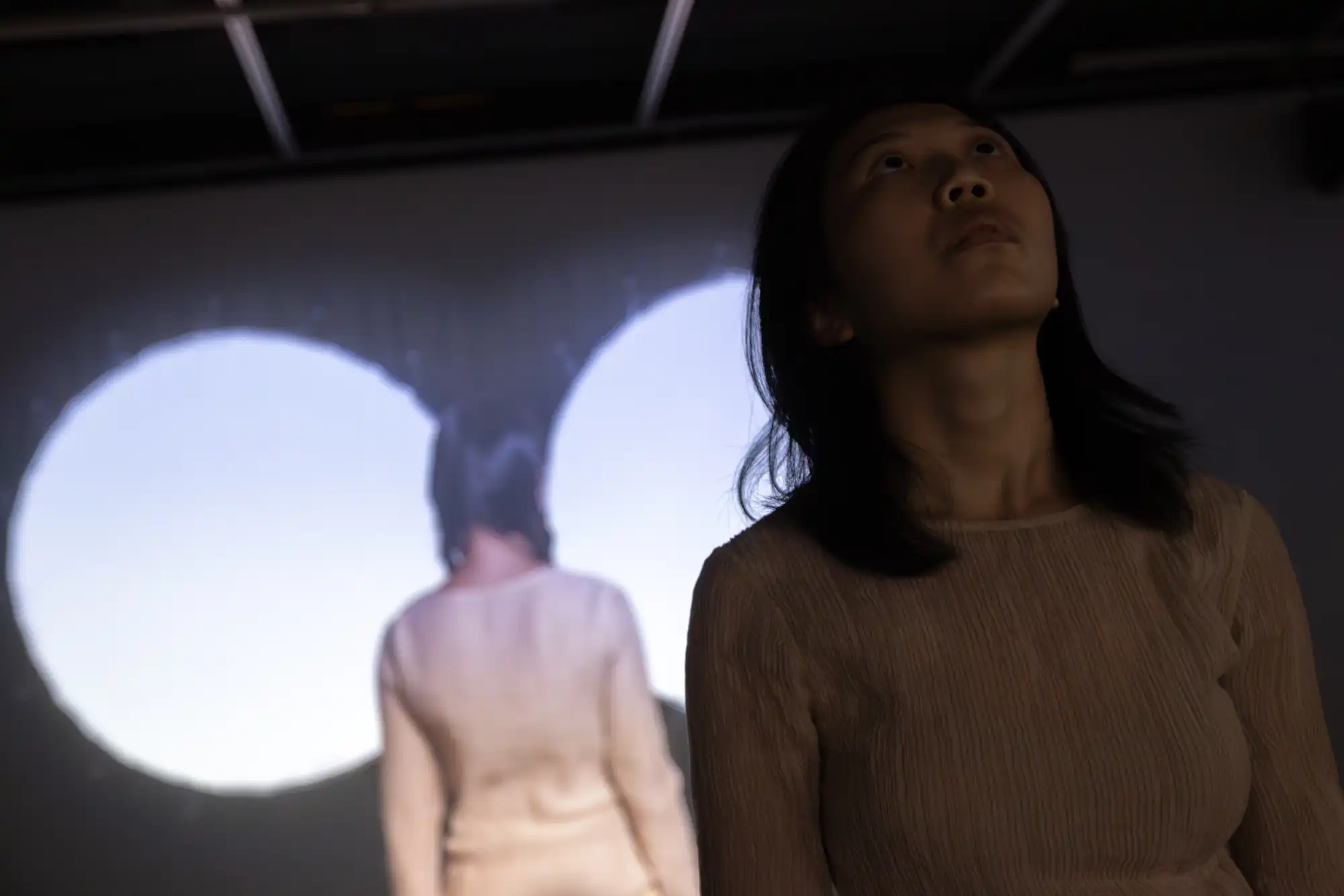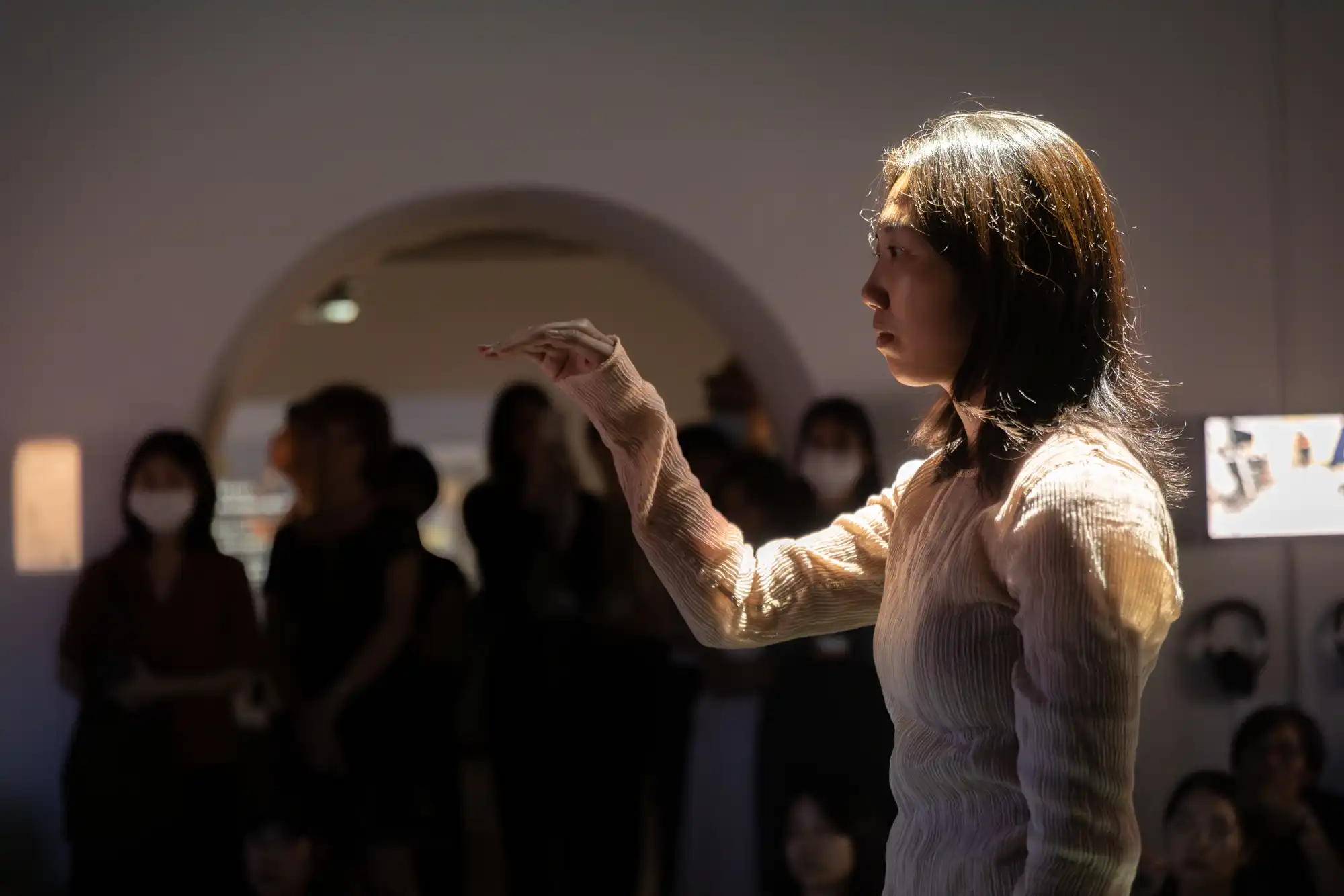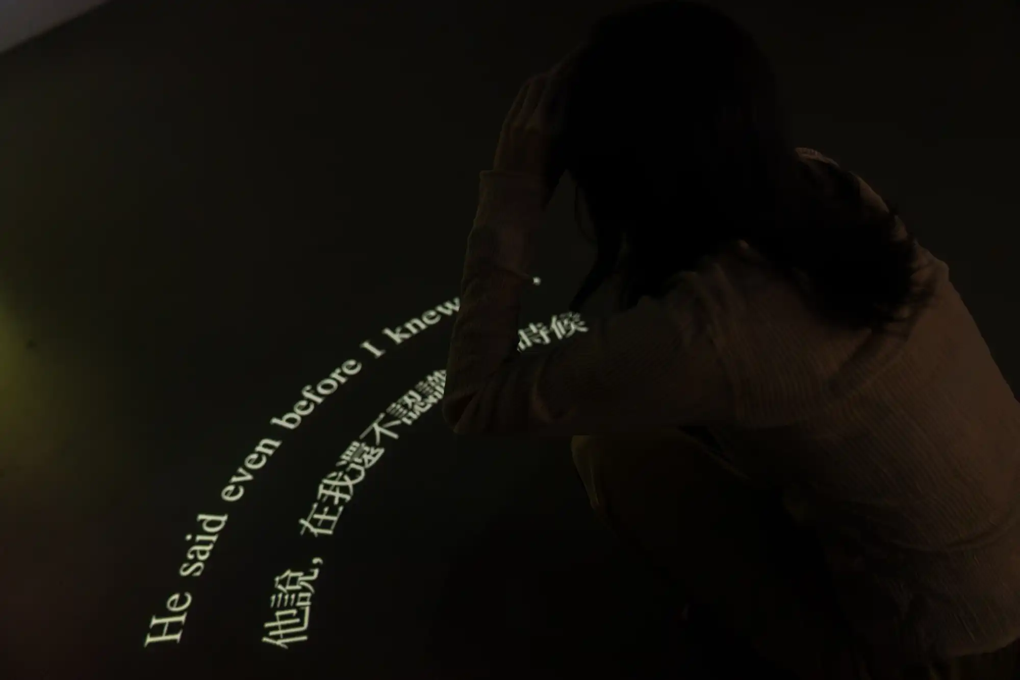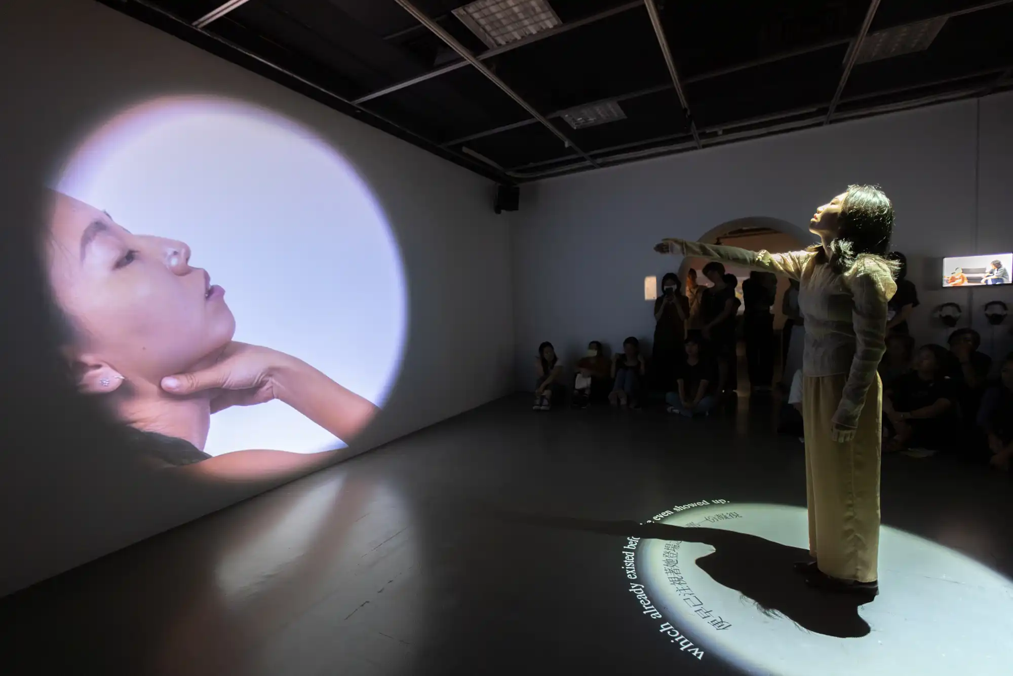 This work starts with one performer whispering a monologue. When the second performer joins, they reenact the first performer’s act together, creating an impression of mirroring each other’s solo performance. The work delves into different facets of self-awareness, such as what others might represent in our imagination, what we might appear in others’ imagination, and the image of “myself” that we envision.